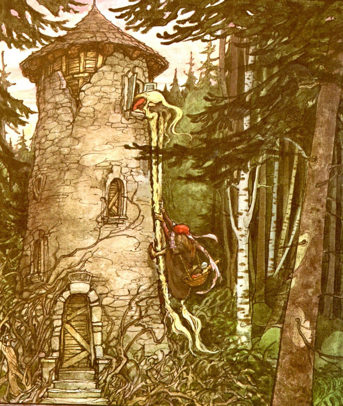 Rapunzel’s witch is portrayed as obsessed with the power of Rapunzel’s hair to restore her youth and beauty. She is portrayed as jealous and ugly, as society sees her: a witch, an old crone. As we know, in The Hammer of Witches (1486), Heinrich Kramer and Jacob Sprenger identify the locus of a witch’s power to be her unruly tangle of long, messy hair. It is possible that the constant threat of persecution and death—for the text itself warns “thou shall not suffer that witch to live!”—caused the witch to create a talisman outside of her physical body to contain that power. In this way, we might understand Rapunzel as the witch’s power personified.
