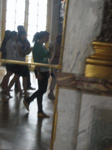 As we passed from the bathing chamber into her dressing room beneath the ornate gilded scrollwork that crested every doorway, I caught my own reflection in the dusty mirrors beyond the tub. In the aged and flaking glass, rays of weak sunlight ricocheted across the dull floor. I thought: it would be easy to imagine this place as a thick-aired prison.